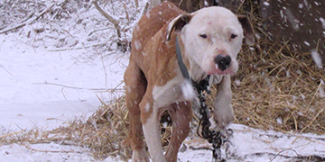 Near the end of December, PETA’s Community Animal Project fieldworkers navigated plummeting temperatures to help dogs left outside in the bitter cold. Chomper had no way to escape the icy wind and no warm place to curl up. We gave him an insulated shelter and neutered him at no charge.