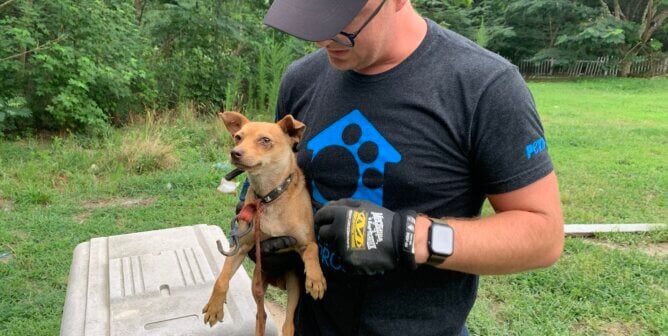 This tiny dog lived without comfort, warmth, or anyone caring for him—just a short chain and a plastic crate in the dirt. You need to see his rescue story.