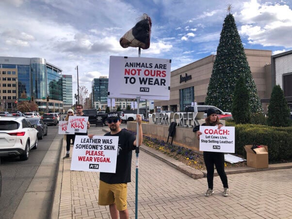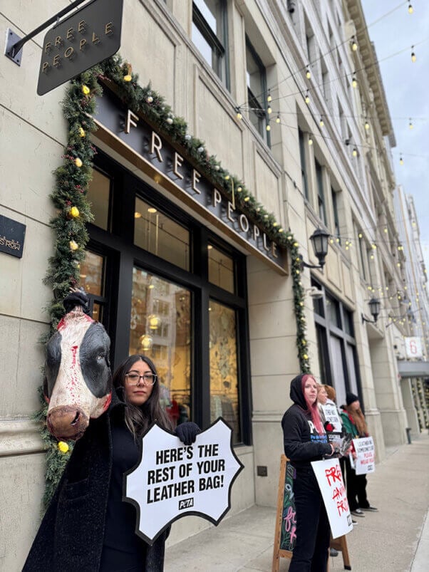 These demonstrations call attention to the annual slaughter of more than a billion cows and other animals for their skin. With numerous durable, eco-friendly, and animal-free materials available on the market, there’s no reason for any store or designer to support animal cruelty.