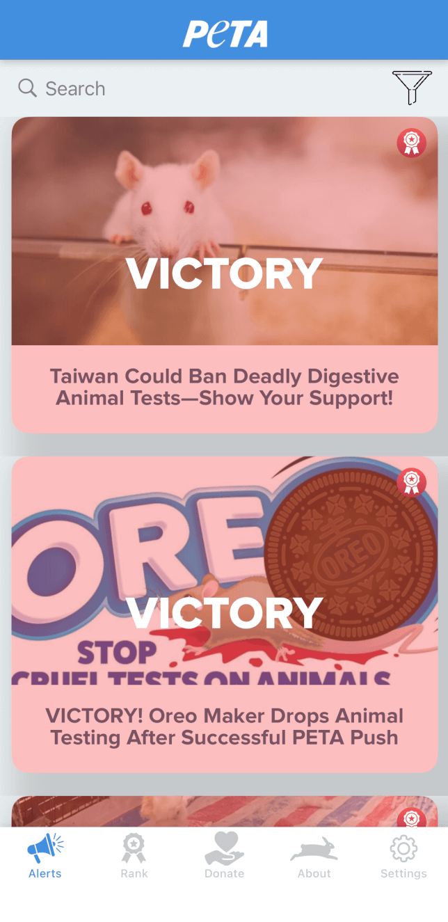 With the app on your iPhone, you will persuade designers to stop using fur, end unnecessary tests on animals, and run the circus out of town from bed, waiting rooms, the airport, the line at the grocery store, while getting your oil changes, and (almost) anywhere else! With supporters like you checking in on campaigns and taking action from your phone, the PETA app leads to endless victories for animals.