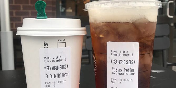 The next time that you order a drink from your favorite coffee shop, give the barista an animal rights message to write on your cup instead of your name.