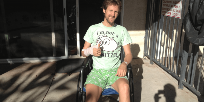PETA’s own Eric Deardorff goes to a physical rehabilitation center after an accident and ends up rehabilitating the staff’s eating habits!