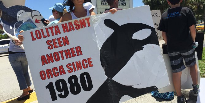 Protestors descend on the Miami Seaquarium on the 45th anniversary of lone orca Lolita’s capture.
