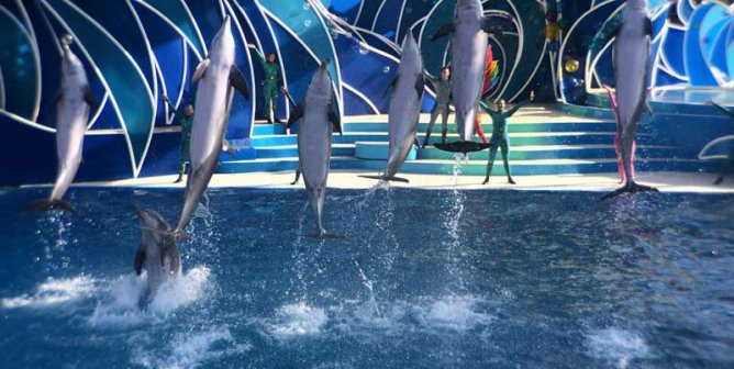 PETA campaigns against amusement park’s cruel orca tanks and exhibition of wild animals in crowded expo centers.