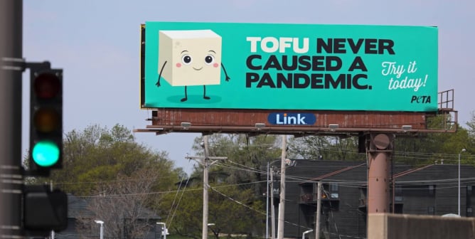 Confining and slaughtering animals gave us COVID-19. So, what are you waiting for—a giant sign that you should go vegan? Well, in that case …