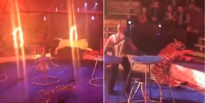 Moments after being forced to jump through fire, the animal collapsed and started convulsing— mere feet from the front row of the crowd.