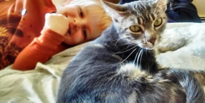 Ampersand, the cat who loves babies, has been adopted by a family with a young son, and that suits this feline Mary Poppins to a T.
