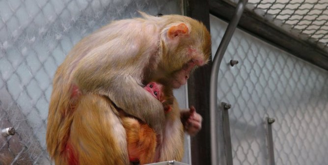 A baby monkey strangled to death on a “surrogate mother”—after being taken from her real one.