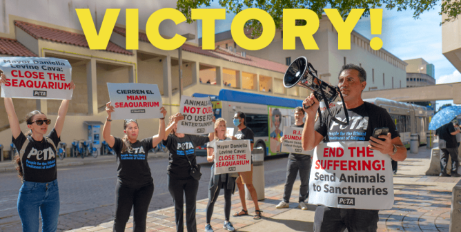 Breaking news! The Miami Seaquarium is officially closed thanks to PETA’s sustained legal pressure, protests, and public pressure.