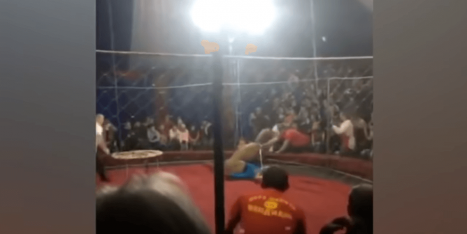 Moments after being forced to jump through fire, the animal collapsed and started convulsing— mere feet from the front row of the crowd.