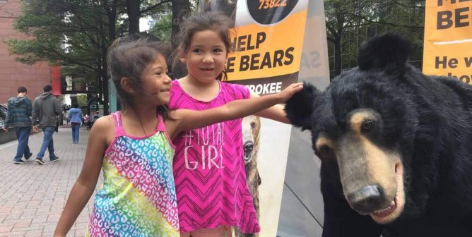 PETA’s moving, speaking robotic bear captivates children and encourages parents to steer clear of bear pits.