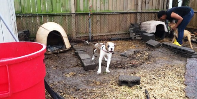 While delivering straw to cold “backyard dogs,” PETA fieldworkers came across a shed and discovered something strange.