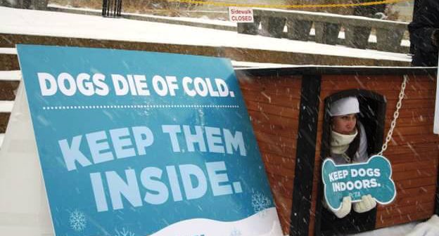 See what it’s like to sit outside in the freezing cold in a doghouse all day long.