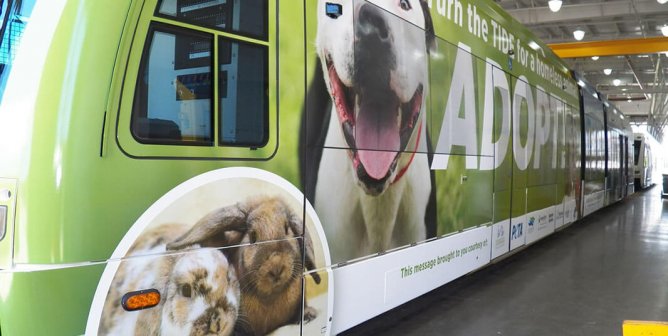 Thousands of commuters get a reminder to spay, neuter, and adopt homeless animals from the shelter.
