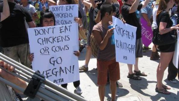 Chick-fil-A, the house of the homophobic waffle fries, wants homosexual people just to accept not having equal rights and chickens just to accept having their throats slashed and being scalded to death. But a flock of protesters crashed Chick-fil-A’s Appreciation Day to show that they don’t appreciate the fast-food chain’s efforts to keep people in … Read more »