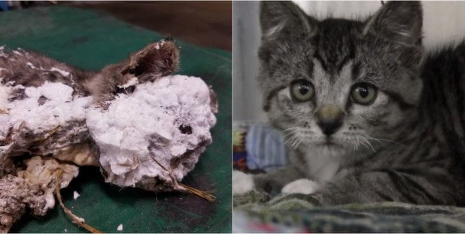 Thanks to quick-thinking sanitation workers, this kitten is expected to recover. Now, PETA and police want to find the person responsible before anyone else gets hurt.