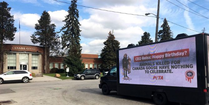 PETA is reminding Dani Reiss that the coyotes and geese killed for Canada Goose jackets have nothing to celebrate.