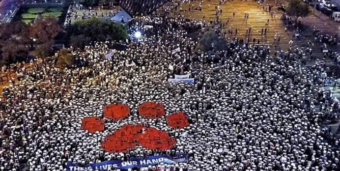 Some 30,000 activists took to the streets of Tel Aviv, Israel for the largest animal rights march in the country’s history.