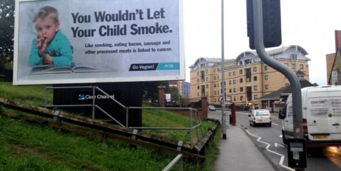 Following a report from the World Health Organization that eating processed meat is as dangerous as smoking cigarettes, we’ve put up a thought-provoking billboard in Leeds.