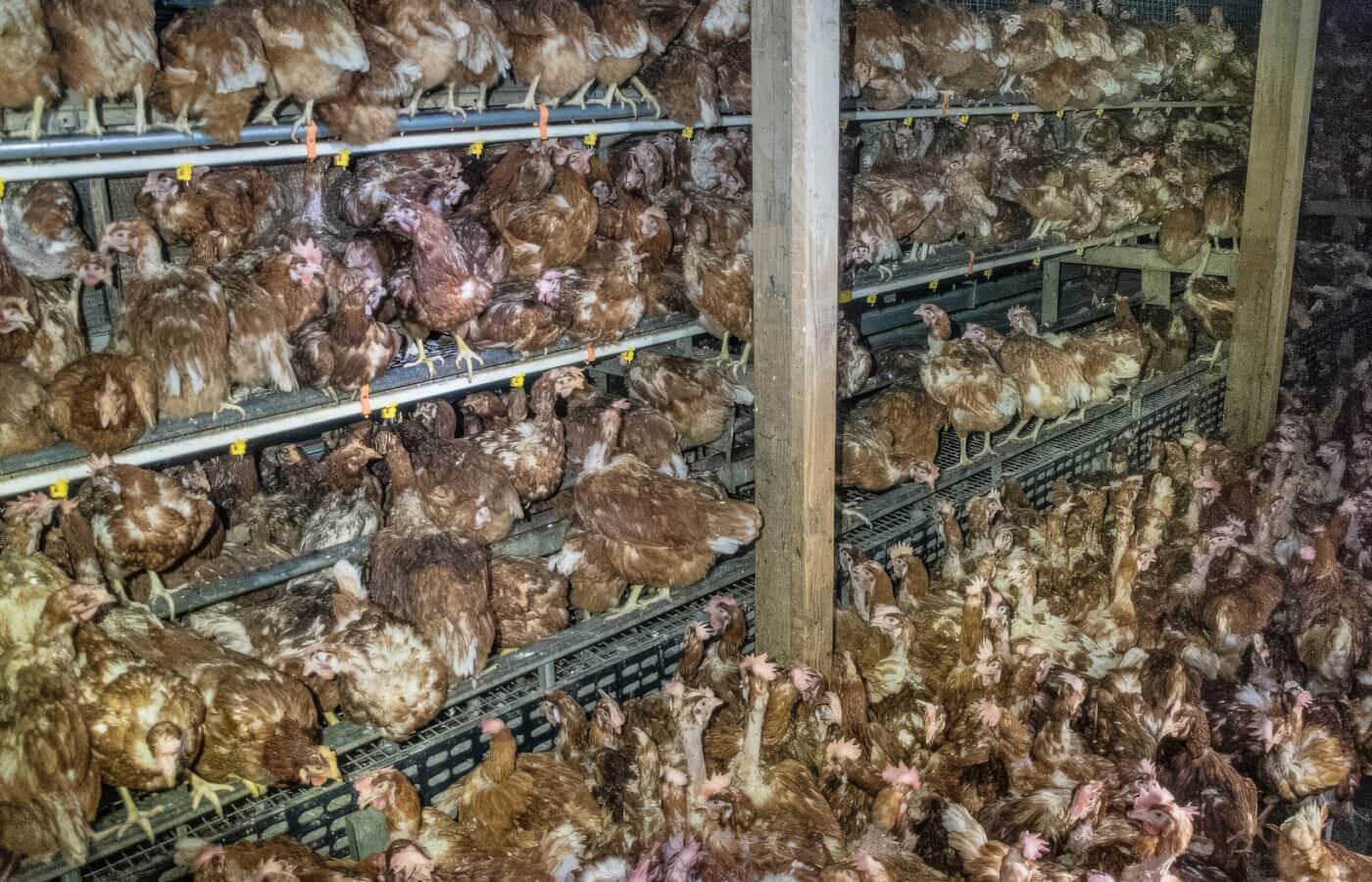 Cage-free housing cannot achieve good animal welfare because it exists within a larger industrial system that exploits hens and causes them great suffering at every stage of their lives. It simply removes battery cages but transforms the same factory farm shed into one large cage. Cage-free environments involve most of the same abuses found in conventional housing, such as permanently damaging the sensitive tips of hens’ beaks by searing or burning them off with a blade or infrared light and inducing molting to maximize a hen’s egg production. It similarly depends on the cruelties of industrial hatchery and genetic selection to maximize production and exploit hens’ bodies to their biological limits and beyond.