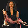 Persia White holds the bloody body of a skinned fox in a graphic new ad for PETA titled, “Here’s the Rest of Your Fur Coat.”