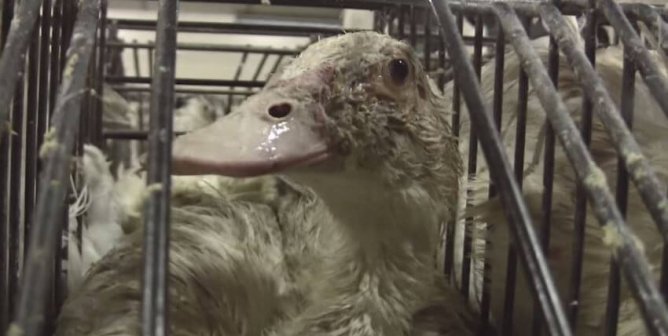 Get a glimpse into the short and miserable “lives” of ducks and geese killed for foie gras.