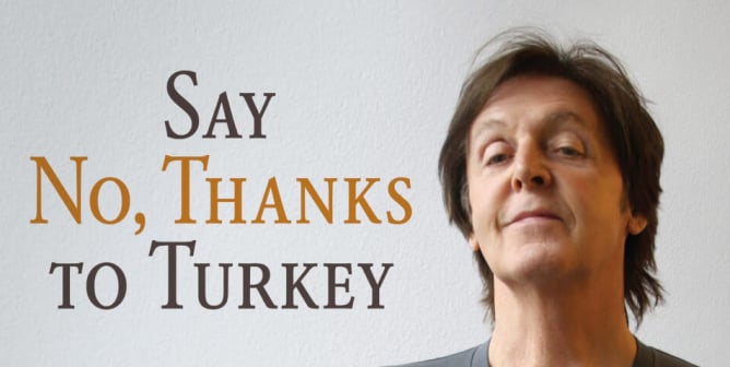 Say “no, thanks” to turkey this Thanksgiving and join Paul McCartney in making some delicious vegan recipes instead.