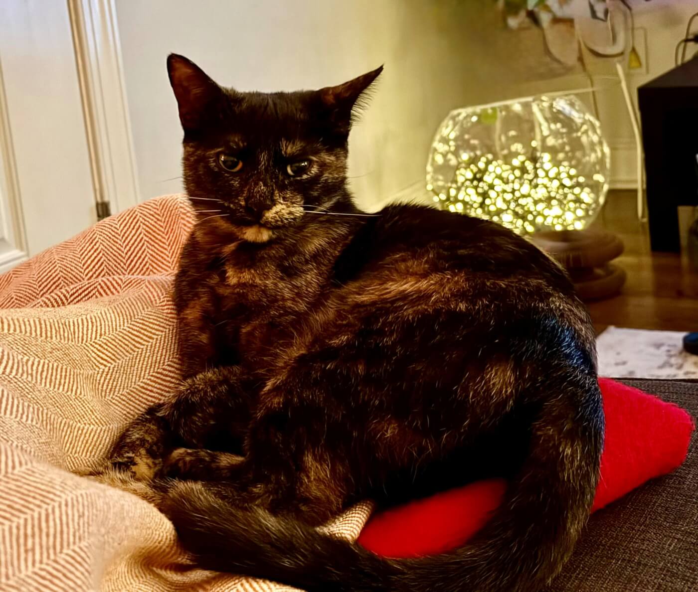 It wasn’t long before word spread among my humans’ coworkers that my very first foster companion was as playful and fun-loving as they come—so much so that a certain PETA Foundation senior vice president found himself getting a little jelly at the thought of another applicant being the one to ensure that Marmalade’s life is forever sweet. One look into the tiny tortie’s caramel eyes was all it took for him to whisk the cat wand–loving cutie to her new, true furever home.