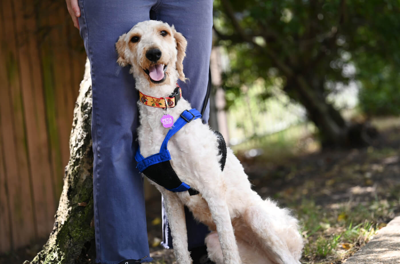 With Keke displaying no sign of aggression and the woman barring fieldworkers from checking on the other crated dog in the house, the situation got all the more sus. PETA looped in local animal control, which seized Keke after it was found that the woman had failed to provide the goldendoodle with the care required by law. Keke was transferred to PETA for some much-needed R&R—and a bath and a haircut!