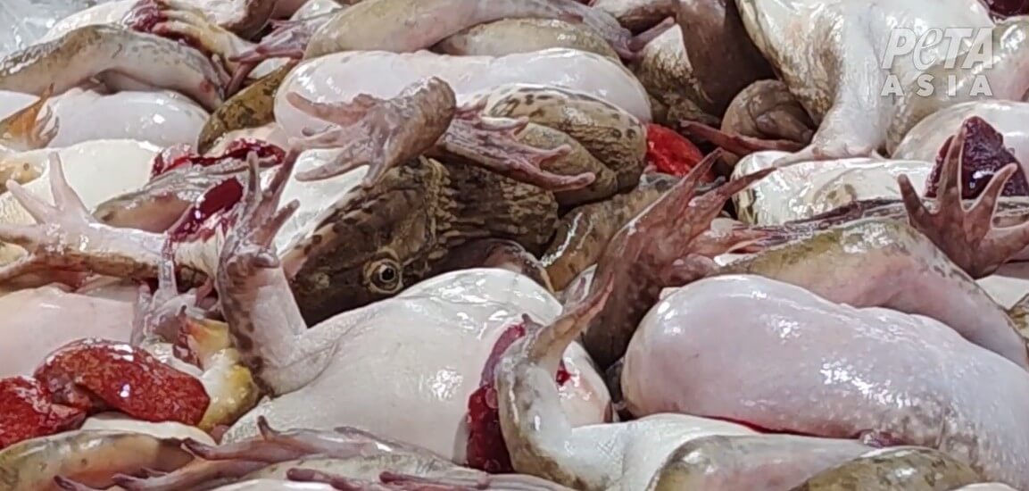 PETA Asia investigators’ new footage shows that after workers removed the frogs from the freezing cold bags, the frogs appeared dead or unconscious.