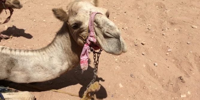 PETA Asia’s exposé of working animals in Petra reveals the terrible suffering of horses, mules, donkeys, and camels forced to carry tourists under the hot desert sun.