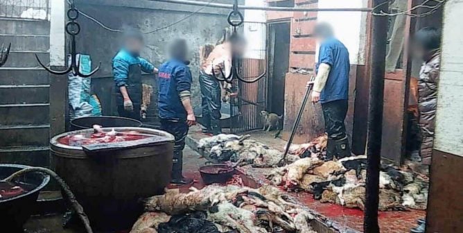Eyewitness video shows workers plunging knives into the throats of conscious lambs and starting to skin them while they’re still alive and moving.