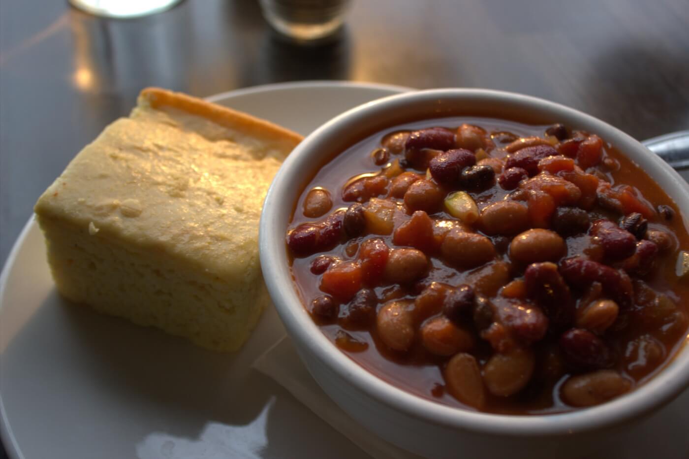 Sweet Melissa Café has long been a haven for diners seeking vegetable-forward meals in Wyoming, and its 3 Bean Chili is a testament to how satisfying simple ingredients can be. Pinto, kidney, and black beans simmer together with tomatoes, onions, green peppers, and corn to create a thick, hearty chili that’s as delicious as it is filling.