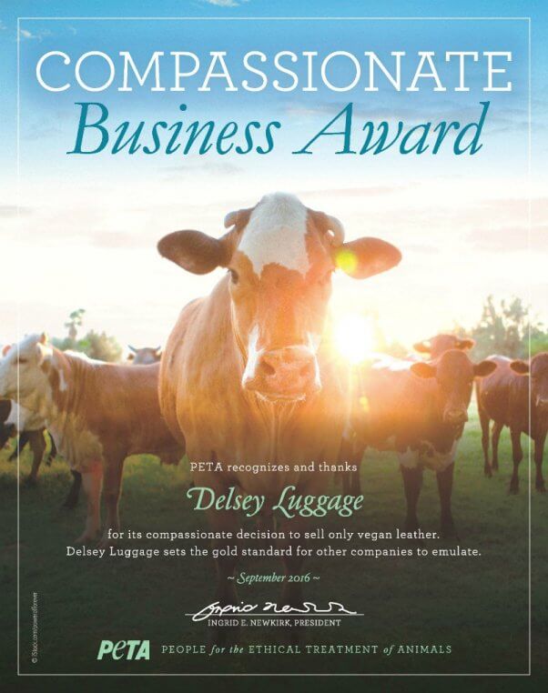 Delsey is the second-largest luggage brand in the world, distributing to over 110 countries. We’re so thrilled with the news—which will have a hugely positive impact for animals—that we’ve presented the company with a Compassionate Business Award and sent some vegan chocolates.