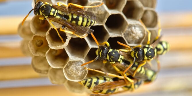 I stayed at a hotel in Europe recently. Outside my door there were eaves, and in the corner of them was a tiny nest of wasps, perhaps the width of a hand. The wasps minded their own business, going out – to look for nectar, I suppose – and returning to the little hive, busily popping in and out but always keeping way up high, above my head. I could imagine they thought, “This is it: We aren’t bothering anyone tucked away carefully in this little corner. No one will mind us, and we are safe from wind and rain here – it’s a perfect spot.”