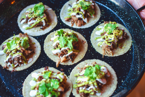 We had two rules: The food must be amazingly good, and there must be tacos! Many caterers either offered vegan menus or were willing to work with us to create one, and several of our favorite restaurants provided catering, too. In LA, we selected Todo Verde and its jackfruit tacos with cashew crema, oyster mushrooms en mole, semilla salad with fresh strawberries, and coctél de oyster mushrooms. Back home in PA, Ladyfingers Catering served more tacos with creative veggie sides and vegan mac ’n’ cheese.