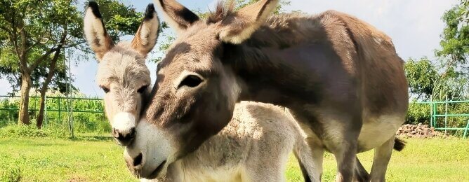 Frequently, rescuers know that they’re getting a “two-for-one deal,” as they did with Karuna, who welcomed daughter Doshi named for the generous donors who fund her care) a few weeks after her arrival. But some donkeys surprise us!