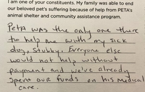 Animals need shelters that accept all without restrictions, waitlists, fees, or other barriers. PETA’s shelter doors are open to animals who are dying and need a painless end, victims of accidents, animals turned away by other shelters, and every other needy soul. We do not shy away from euthanasia when that is the humane and realistic option for an animal. We also provide information, resources, and support to help other shelters stand strong against pressure to enforce harmful “no-kill” policies. A growing number of shelters and cities, including Augusta, Georgia; Bentonville, Arkansas; Danville, Virginia; and Fort Wayne, Indiana, have stood up for the animals they serve and refused to bend to Best Friends’ bullying.