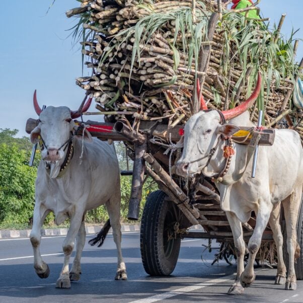 Thomas was among the first bullocks retired by Animal Rahat, back in 2012, but he’s far from the last. Since 2011, the group has been replacing bullock-driven carts with more efficient and cost-effective mechanized alternatives through its Sugarcane Industry Mechanization Project. Due to the project’s influence, one-third of Maharashtra state’s sugar production has been mechanized, and more than 106,700 bullocks have been retired from sugar factories, replaced with over 18,800 trucks and tractors and 270 harvesters. A tractor, capable of transporting 8 to 18 tons per trip, can replace multiple bulls and gives owners improved income opportunities. Not all the bulls that Animal Rahat pushes into retirement can go to its sanctuaries; some may end up ploughing fields, but they are still far, far better off.