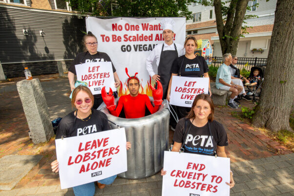 PETA’s legal case argues that the famous Maine Lobster Festival violates the state law against animal torture and cites overwhelming scientific evidence that lobsters are sentient. That entitles them to protection under Maine law, which requires that sentient animals be killed only by methods causing instantaneous death – facts that the city and festival executives apparently preferred to ignore, just as they tried (unsuccessfully) to ignore our attempts to serve them a summons!