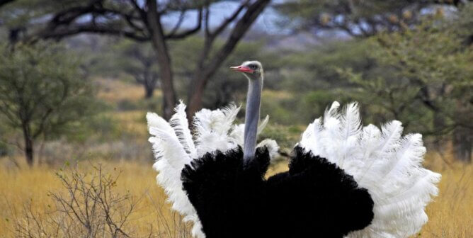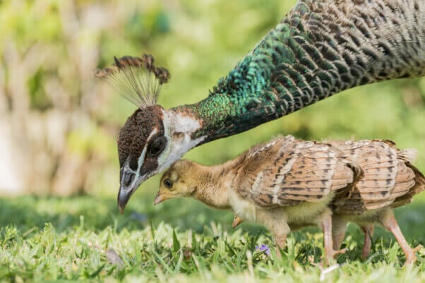 Feathers used for fashion and home goods like duvets are stolen goods, taken by force from their rightful owners: birds like ostriches, chickens, turkeys, peacocks, and ducks. Gentle, family-protective chickens and turkeys, whose feathers are often labeled “marabou,” spend their entire lives confined on filthy factory farms before being shackled upside down and killed.
