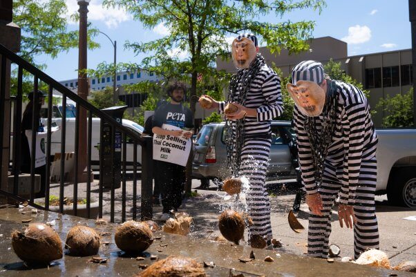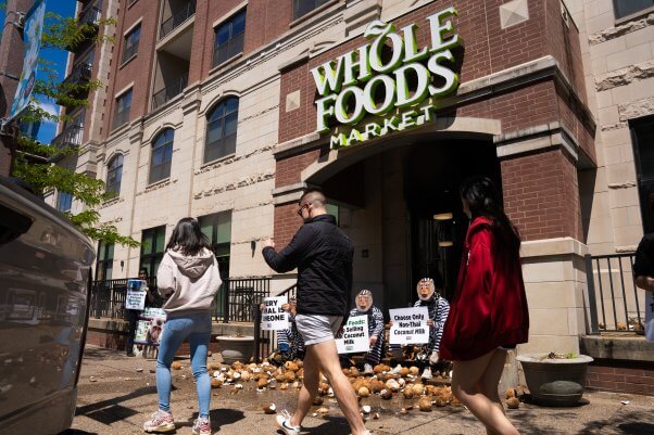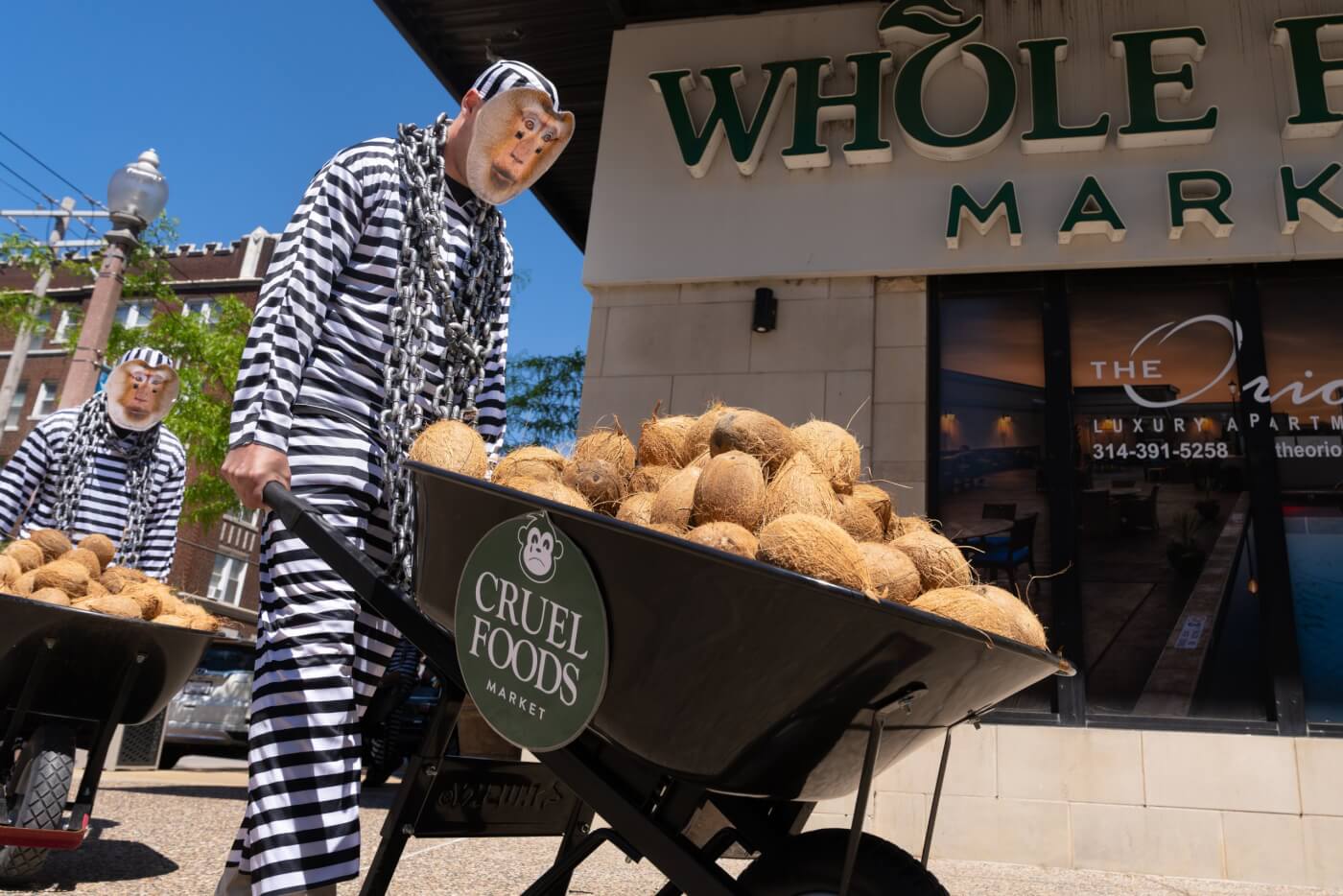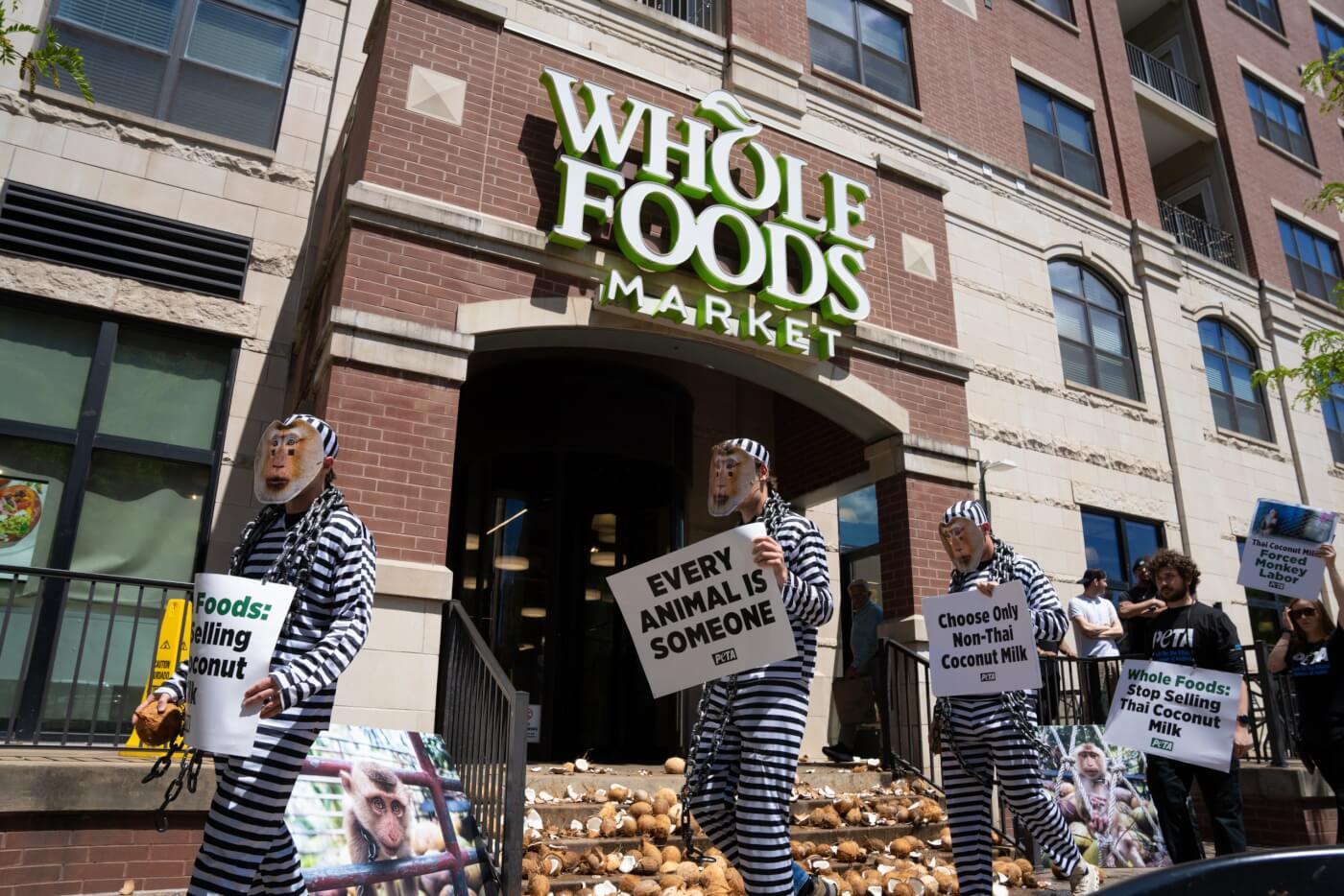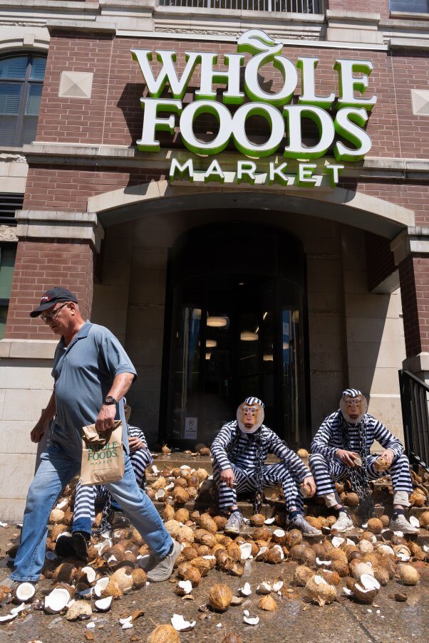 Chained PETA ‘Monkeys’ Dump Coconuts at Local Whole Foods Over Ties to Forced Labor