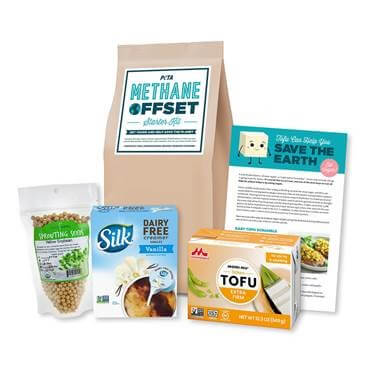 On the heels of the United Nations (U.N) climate report issued this month, which warns that immediate widespread reductions in greenhouse-gas emissions must take place to forestall a “code red for humanity,” PETA has been given the funds to distribute 10,000 Methane Offset Starter Kits to some of the most climate change-vulnerable cities in the U.S. so that people can take personal action now. Because the U.N. has identified animal-based agriculture as a leading cause of greenhouse-gas emissions, the shelf-stable kits contain a block of tofu, seeds to grow soybeans (100 calories of soybeans have 13 grams more protein than 100 calories of beef), nondairy creamer, recipes, and PETA’s vegan starter kit—enough to start anyone on the road to environmentally positive living and healthy, humane eating.
