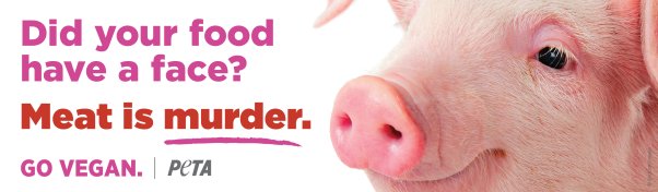 PETA points out that pigs are playful, intelligent, friendly animals who are soothed by music, love playing ball, sleep in “pig piles,” and even enjoy getting massages. At slaughterhouses, workers shoot pigs in the head with a captive-bolt gun, hang them up by one leg, and cut their throat—often while they’re still conscious. Each person who goes vegan spares nearly 200 animals every year; reduces their own risk of suffering from cancer, heart disease, strokes, diabetes, and obesity; and dramatically shrinks their carbon footprint. PETA’s free vegan starter kit can help those looking to make the switch.