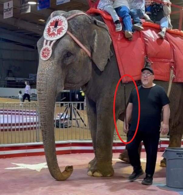 Dr. Draper reports seeing 56-year-old Viola—who has run away from her abusers at least four times—“shuffling the [right] leg forward without visible flexion,” and that the toenail on her left front foot appears to have separated at the quick, with dark discoloration, and “visible separation when weightbearing.” Draper also observed a handler using a sharp, steel-tipped weapon called a bullhook to repeatedly prod the elderly Viola, apparently to keep her moving in a tight circle while being forced to give rides.