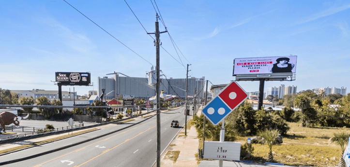 PETA’s billboard can be seen at 9528 Front Beach Road in Panama City Beach. The billboard has also been placed near Domino’s locations throughout the country, including in Lansing, Michigan; Wichita, Kansas; and Lewiston, Idaho.