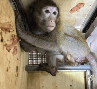 In nature, macaques live in large, tight-knit groups, travel several miles each day exploring diverse habitats, and cuddle together in their favorite “sleeping trees” at night. Monkeys imported to U.S. laboratories are bred on squalid factory farms or abducted from their forest homes, pushing some species toward extinction. They’re packed into small wooden crates, shoved into cargo holds, and flown across the world, often for 30 hours or more.