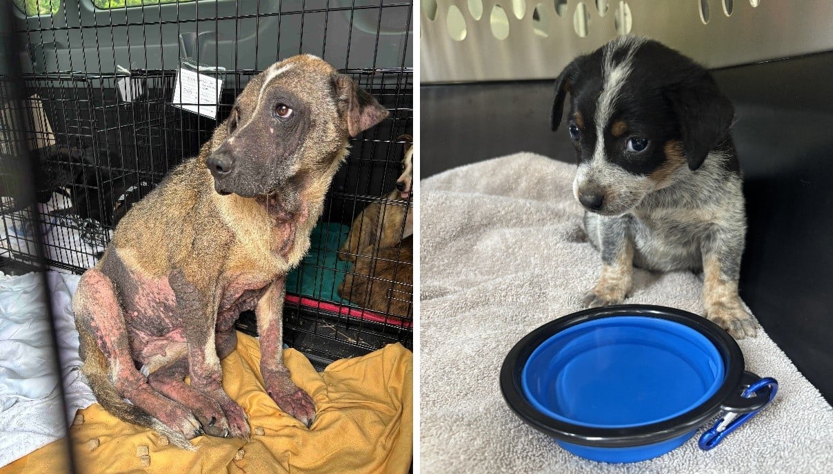 One of Haynes’ charges relates to a dog, named Sunny Girl by rescuers, who—according to veterinary records—was found “scared, lethargic… emaciated” and suffering from severe hair loss and “ulcerated wounds” as well as a secondary skin infection, ear infection, and “severe inflammation everywhere.” Rescuers found Sunny Girl confined to a filthy, feces-filled pen with a bucket of black, contaminated water. The other charge relates to an unweaned puppy, named Wellington by his rescuers, who was found listless and near death, dehydrated and with a bloated abdomen; he refused to eat or drink on-scene, and his mother was malnourished and likely unable to nurse him.