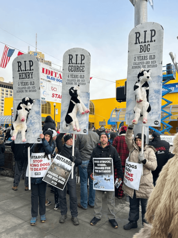 “Death looms over the Iditarod as dogs are forced to run until their bodies break down,” says PETA President Tracy Reiman. “PETA’s Grim Reapers want this bloody race to end before a different Grim Reaper claims yet another dog’s life.”