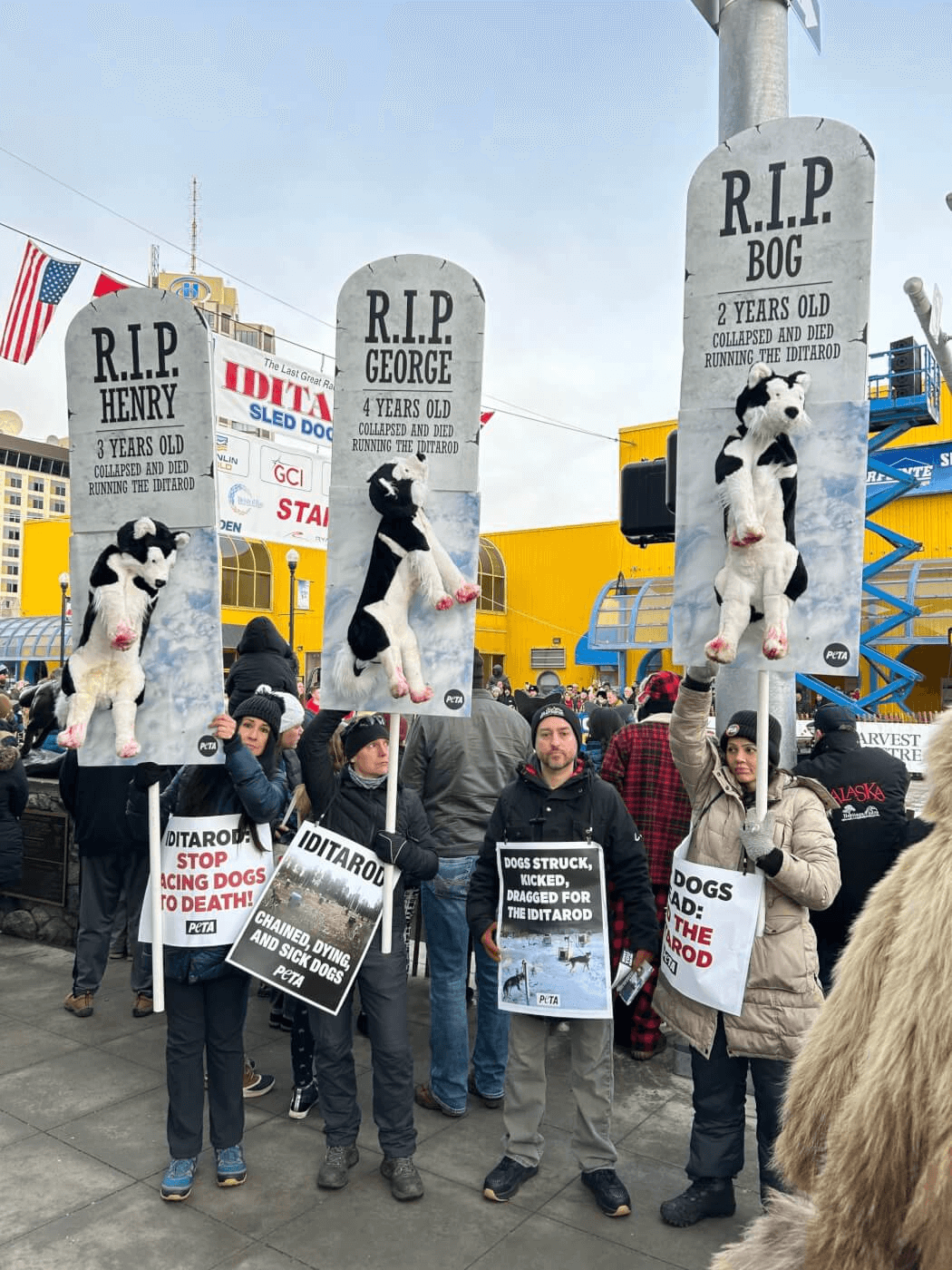 “Death looms over the Iditarod as dogs are forced to run until their bodies break down,” says PETA President Tracy Reiman. “PETA’s Grim Reapers want this bloody race to end before a different Grim Reaper claims yet another dog’s life.”